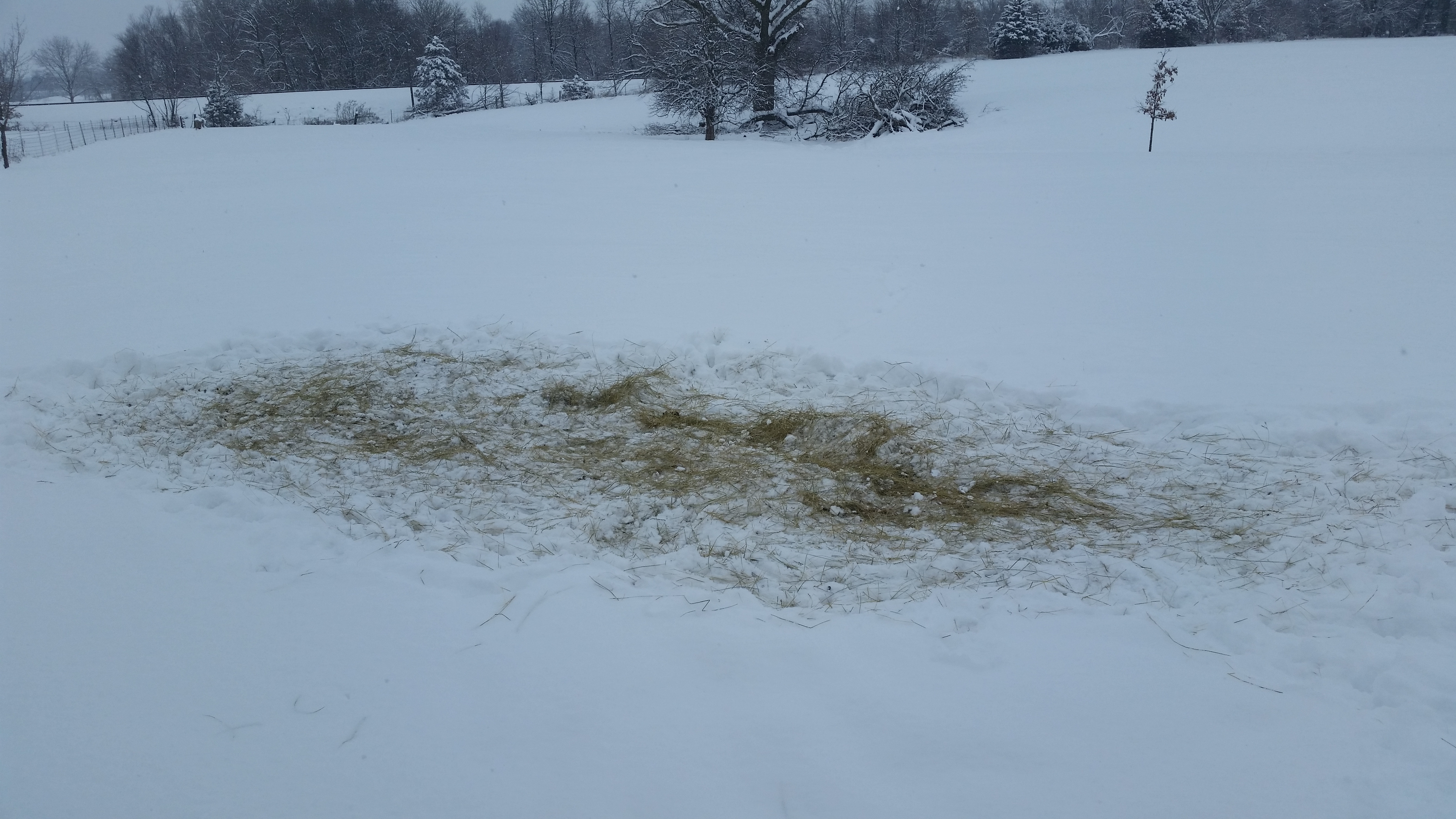 - In conjunction with the above, seeding. I try to target areas that have been grazed thin. The timing of baling allowed this fescue crop to retain the seed, which comes out wherever I feed it. The ewes will work it in as the ground thaws.